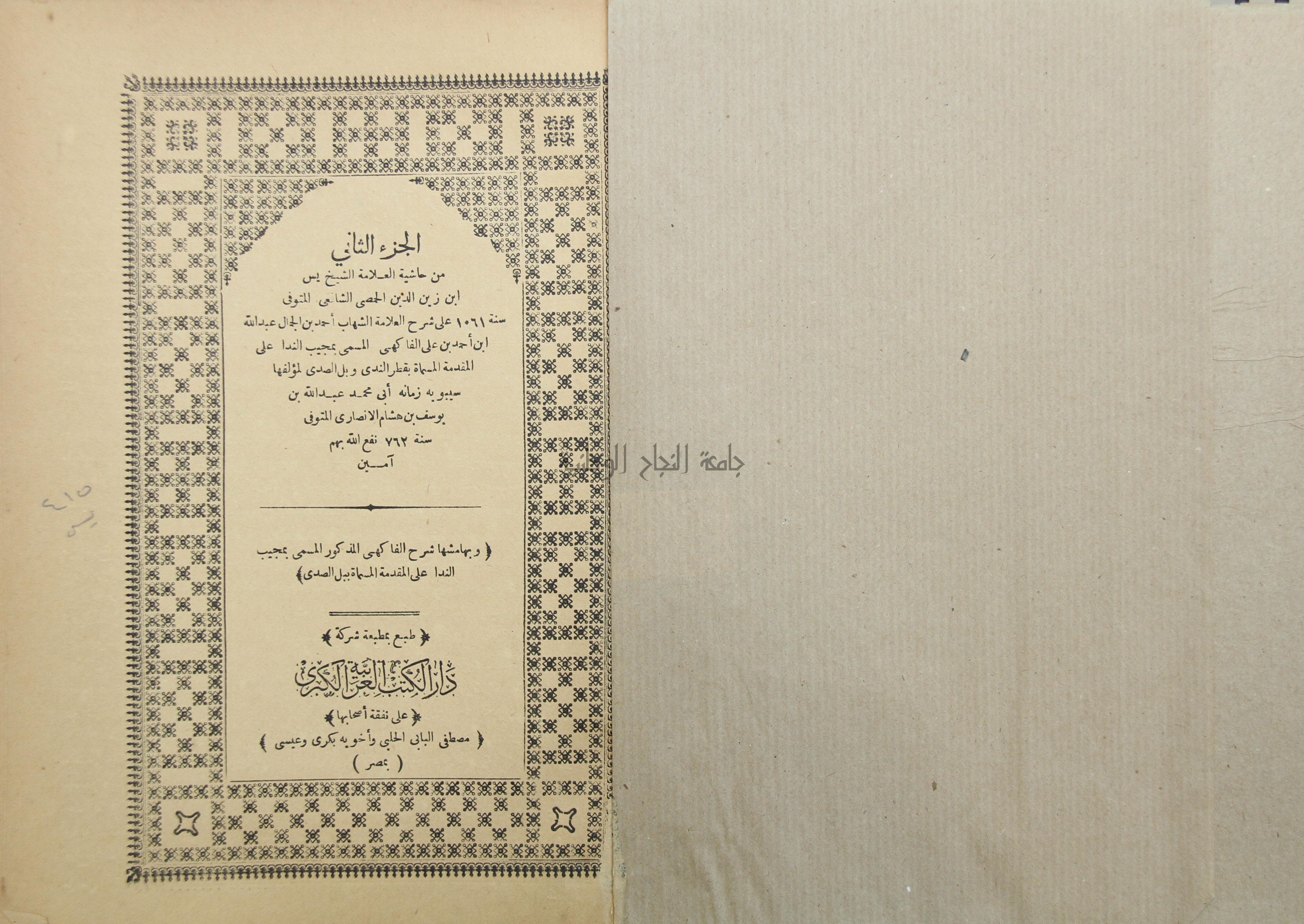 حاشية العلامة الشيخ يس ابن زين الدين الحمصى الشافعي على شرح العلامة الشهاب احمد بن الجمال