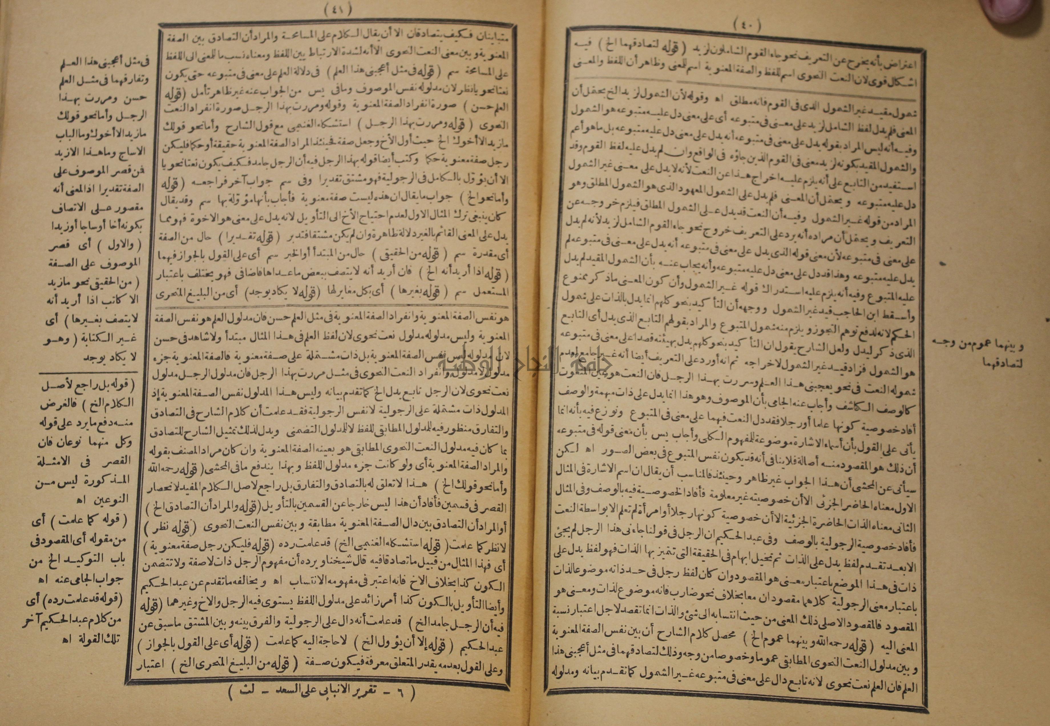 تقرير الشمس الانبابي على شرح سعد الدين التغتازاني لتلخيص المفتاح وحاشيته الشهيرة بالتجريد في