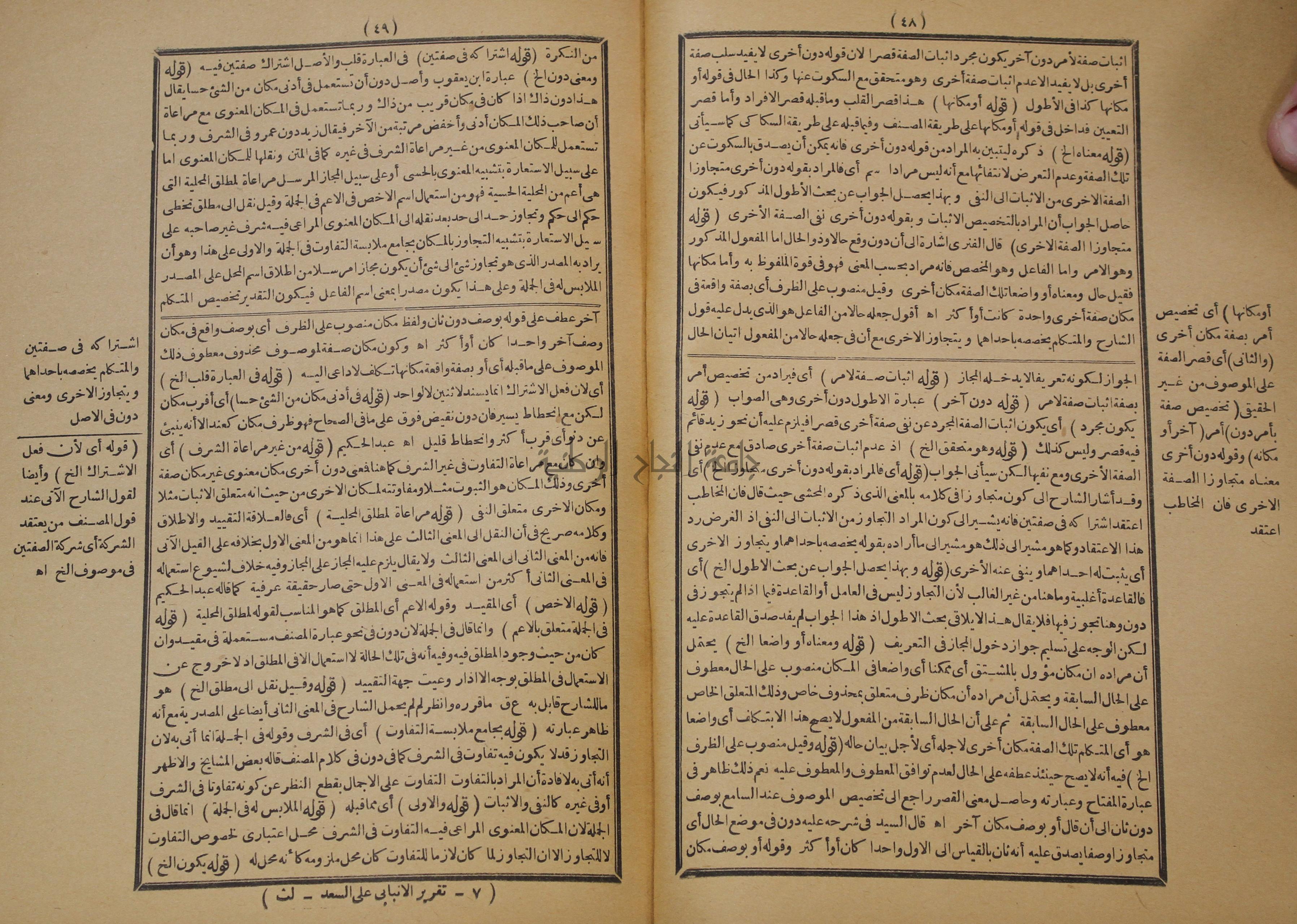 تقرير الشمس الانبابي على شرح سعد الدين التغتازاني لتلخيص المفتاح وحاشيته الشهيرة بالتجريد في